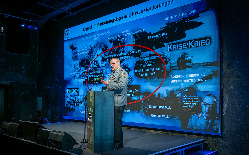 Generalleutnant Gunter Schneider, Hauptabteilungsleiter im Bundesverteidigungsministerium, zeichnete ein deutlich verschärftes Lagebild: „Seit fünf Jahren ist die Schlaraffenzeit vorbei. Wir erleben fundamentale Veränderungen. Man könnte von einem Epochenwechsel sprechen.”